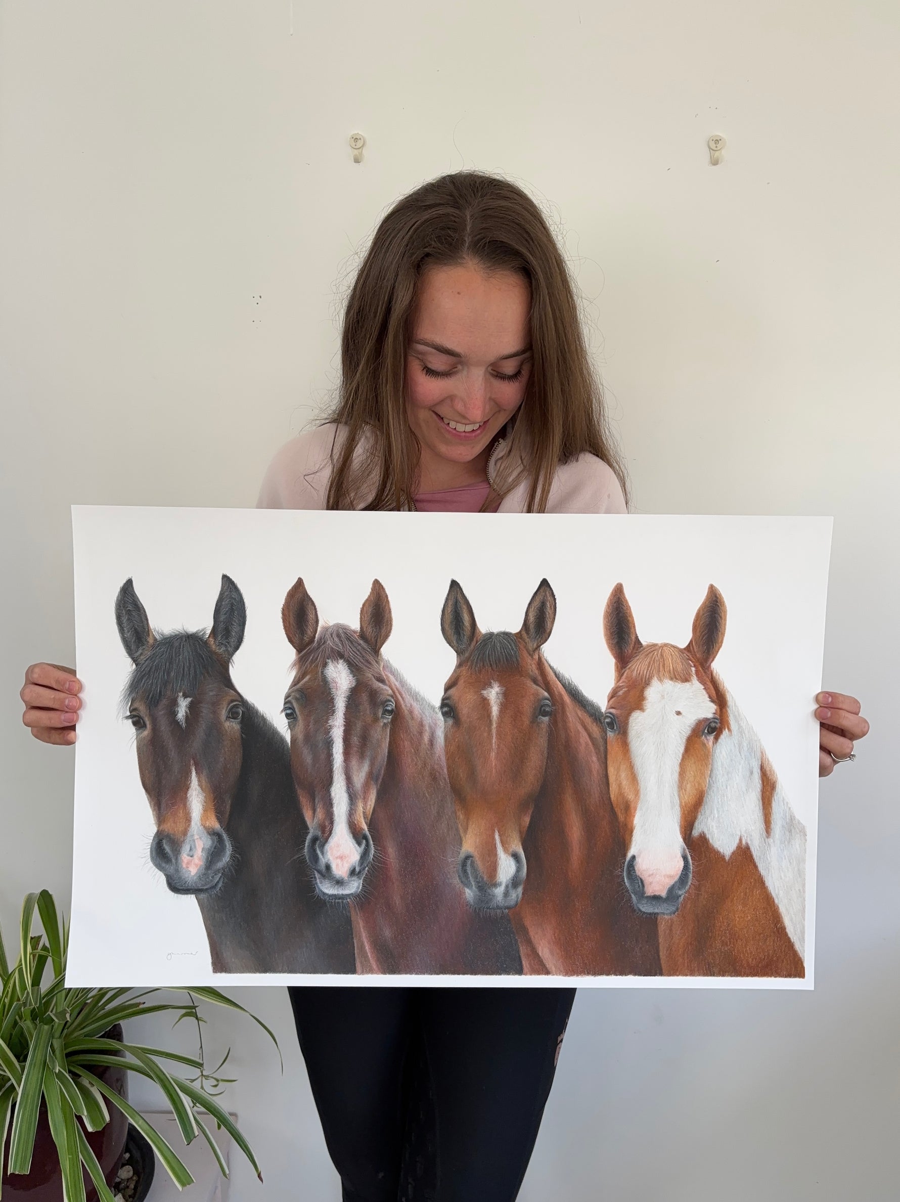 Georgie is an artist specialising in realistic depictions of horses, British wildlife and rural living. Inspired by her life in the British countryside, everything Georgie draws reflects her deep rooted love for all things country.