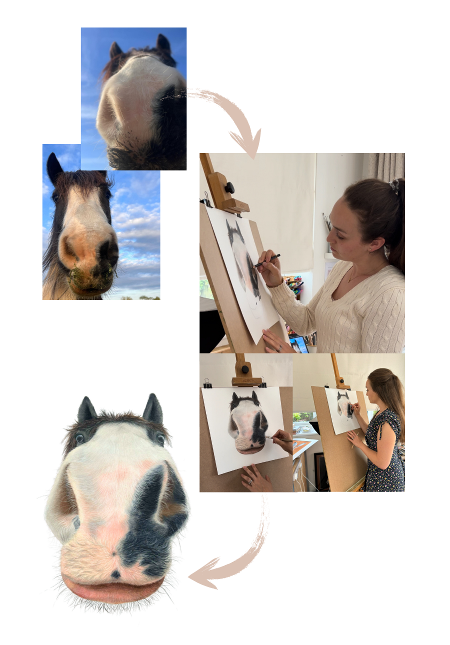 I have been rendered absolutely speechless and in tears by the drawing Georgie did for me. I requested a Nosey Pony Portrait of one of the Mounted Police Clydesdale’s I work with. His name is Prince, and he has my whole heart. I’m his person as much as he is my horse. Holding the drawing in my hands was such a surreal moment. No photo I’ve taken of him has ever come close to the beauty that this drawing holds.