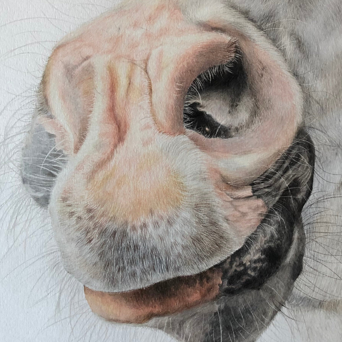 Nosy Pony captures the unmistakable softness of a horse’s muzzle, bringing to life that heartwarming moment when a horse leans in, nostrils flaring with curiosity. Every equestrian knows that feeling of a horse's muzzle in your face, and how soft they are to touch!